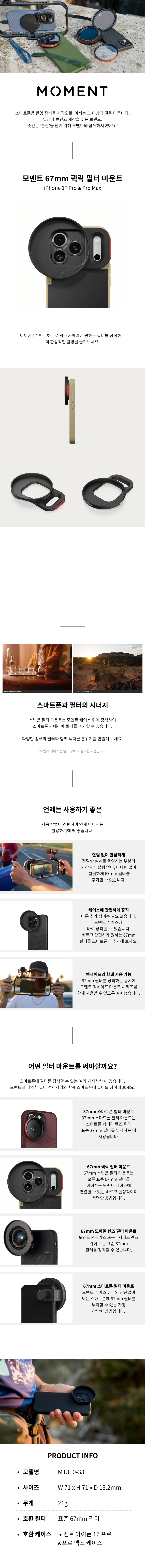 모멘트 아이폰 17 Pro & Pro Max 67mm 퀵락 필터 마운트 MT310-331